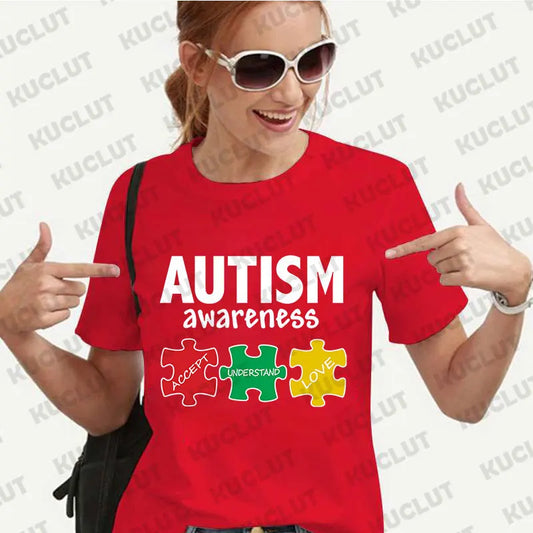 Women Autism Awareness T-shirt 2024 Fashion Print Y2k Graphic Tops Short Sleeve Tees Harajuku Oversized Autism Mom Streetwear