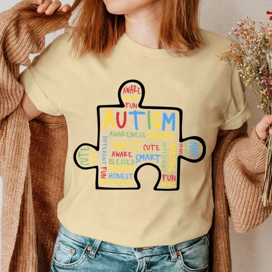 Women Clothes Autism Awareness Puzzle T-shirt Y2k Graphic Autism Mom Print Tops Fashion Short Sleeve Tees Female Clothing